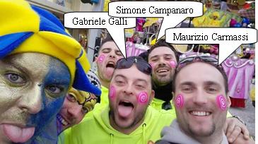 Tra i vari carri c’era anche quello della foto in fondo, al quale ha lavorato anche un mio amico che si chiama Gabriele Galli. La sua famiglia è da sempre una famiglia di carristi. Il suo nonno, Arnaldo Galli - che vedete nella foto con la sua “discendenza” - ha addirittura vinto 8 premi. Oltre a Gabriele ho rivisto altri 2 amici: Maurizio Carmassi e Simone Campanaro (nella foto qui a fianco). La sfilata è durata 3 ore e mezza. Verso le 20:30, ormai a buio sono iniziati i fuochi d'artificio musicali durati 40 minuti: che sono stati stupendi è dir poco!